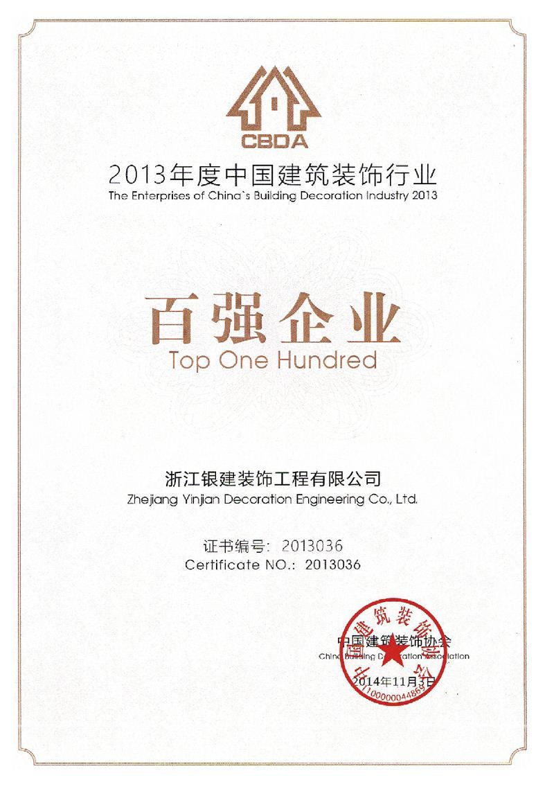 中國建筑裝飾三十年專業(yè)化百強企業(yè)