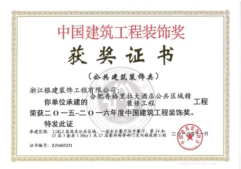 杭州市建設(shè)工程“西湖杯”(裝飾優(yōu)質(zhì)獎)