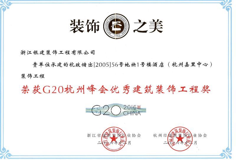 G20杭州峰會優(yōu)秀建筑裝飾工程獎