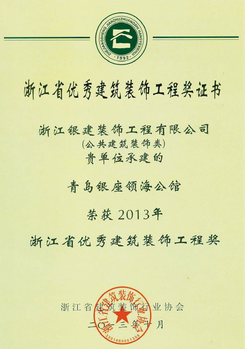 浙江省建筑裝飾行業(yè)二十年領(lǐng)軍企業(yè)